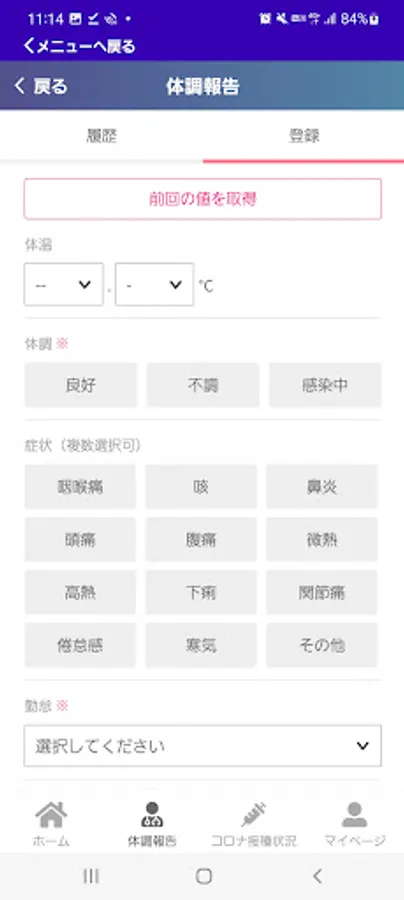You can also report the virus infection status and the function to notify the company of the individual situation at the time of a disaster.