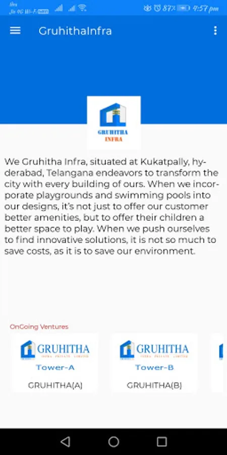We Gruhitha Infra, situated at Kukatpally, hyderabad, Telangana endeavors to transform the city with every building of ours. When we incorporate playgrounds and swimming pools into our designs, it’s not just to offer our customer better amenities, but to offer their children a better space to play. When we push ourselves to find innovative solutions, it is not so much to save costs, as it is to save our environment.