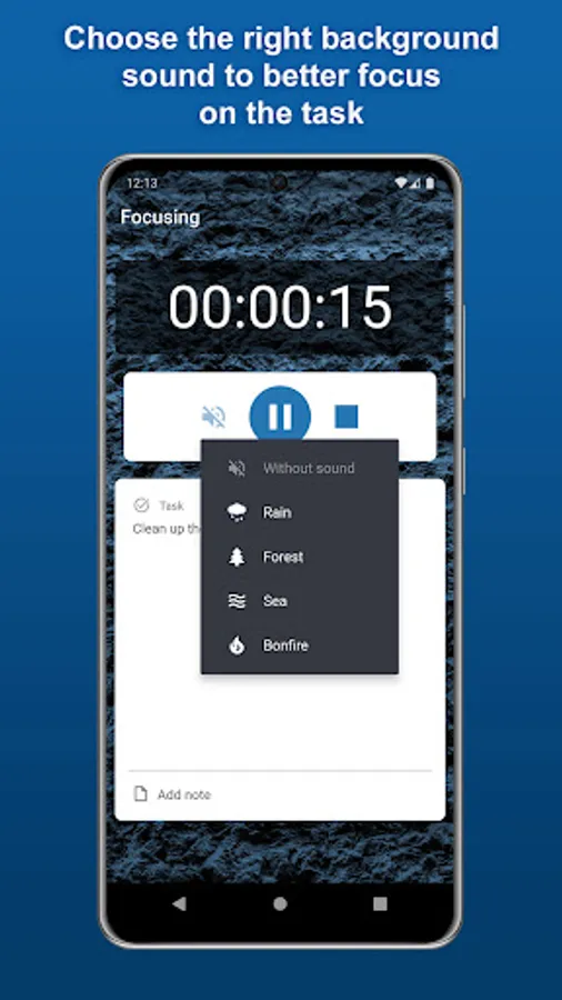 - The app allows you to focus on completing a specific task from your list with the option to choose a melody that helps you concentrate better on the task.