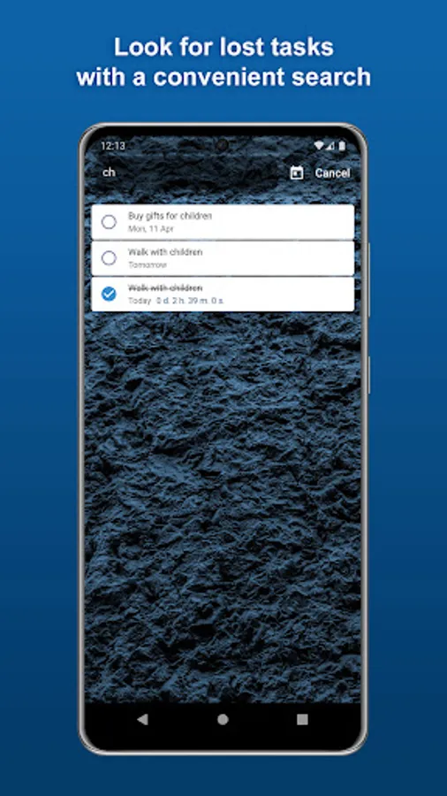 - Convenient search function in the app allows you to find any lost tasks. There is search by text and by task date.