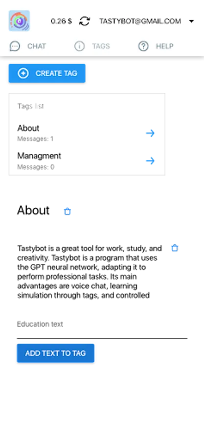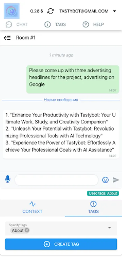 Introducing Tastybot - your ultimate companion for work, study, and creativity! This innovative app harnesses the power of GPT neural networks, specially adapted to fulfill professional tasks.