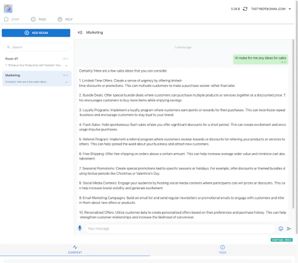 3. Contextual Control: Take full control of Tastybot with its intelligent contextual understanding. It adapts to any situation, seamlessly integrating with your tasks, projects, or brainstorming sessions.