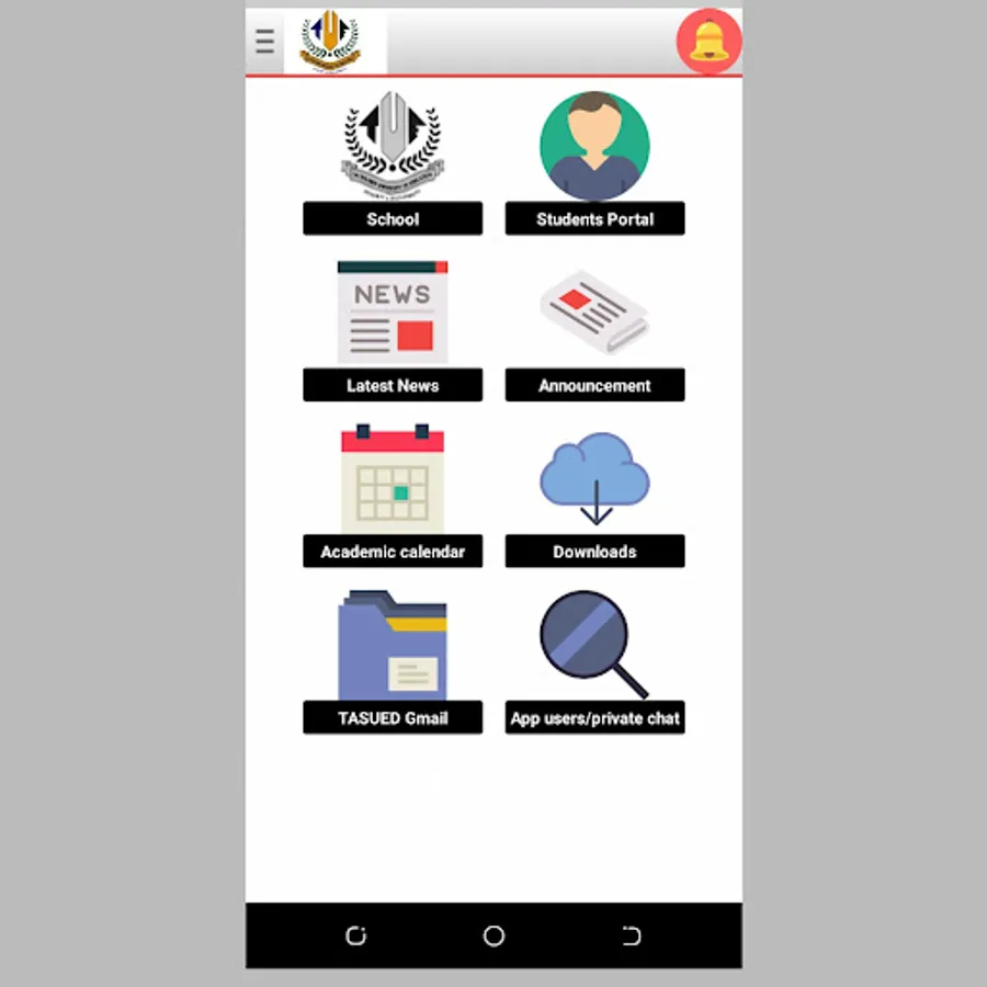 School,student portal, downloads,Tasued email, announcements,latest news,quick link(gallery, DAPQAR, sports and recreation, colleges and department, courses overview, university management), admission portal, library,e-request, research,about school, journals, find users/private chat, download School anthem lyrics and audio and more