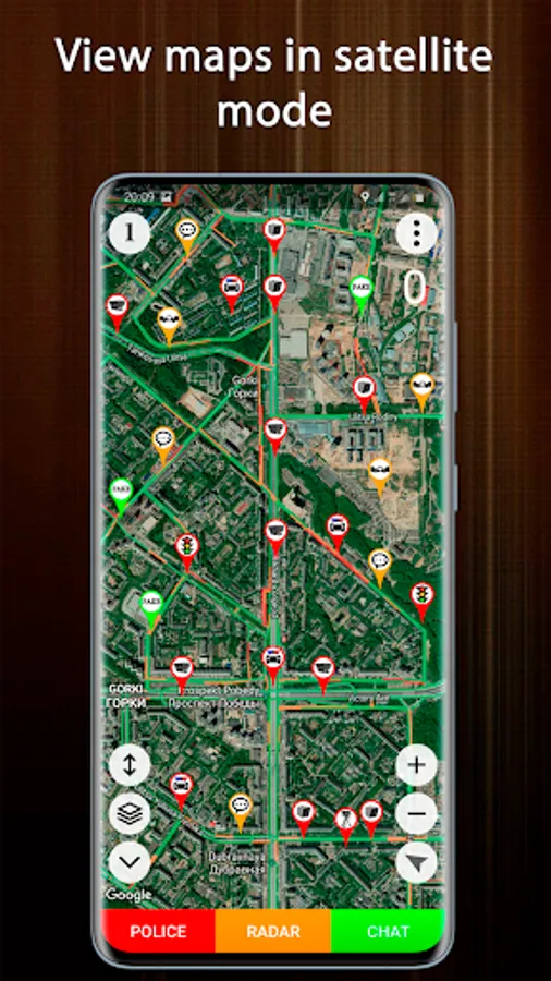 With the "Police Detector" application, you can mark the location of speed cameras and police patrols on the map, as well as see their location marked by other users of the application. You can also mark road events like road accidents, road repairs, weight control and ask for help from other users of the application if you have a problem on the road.