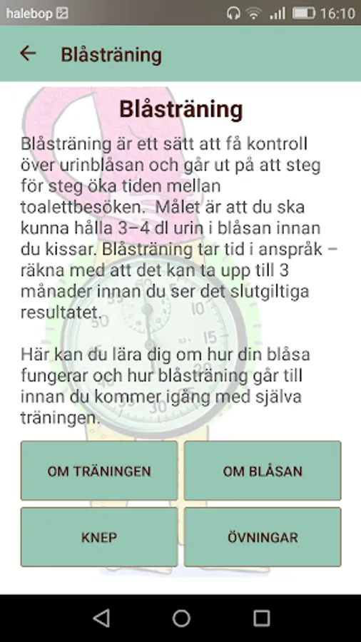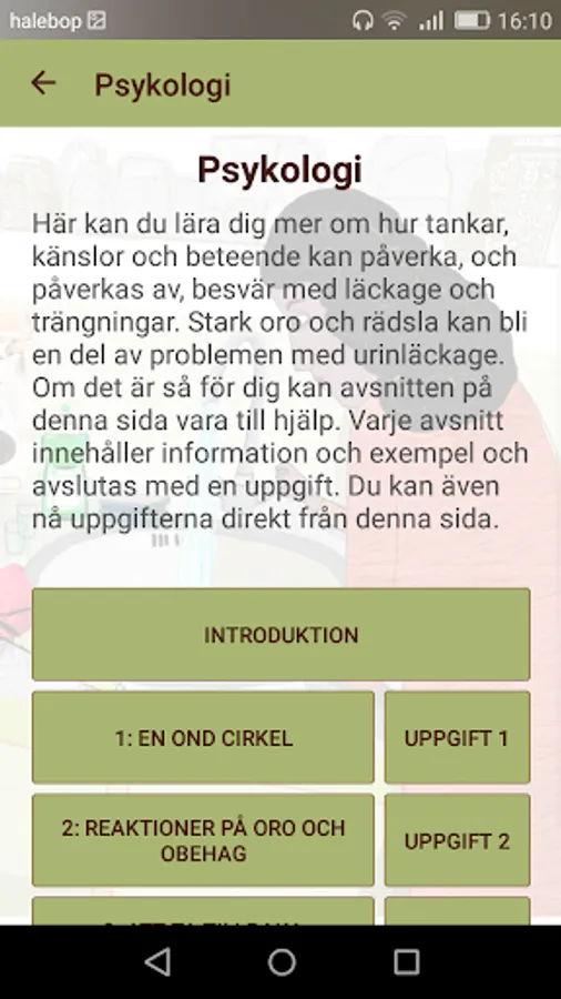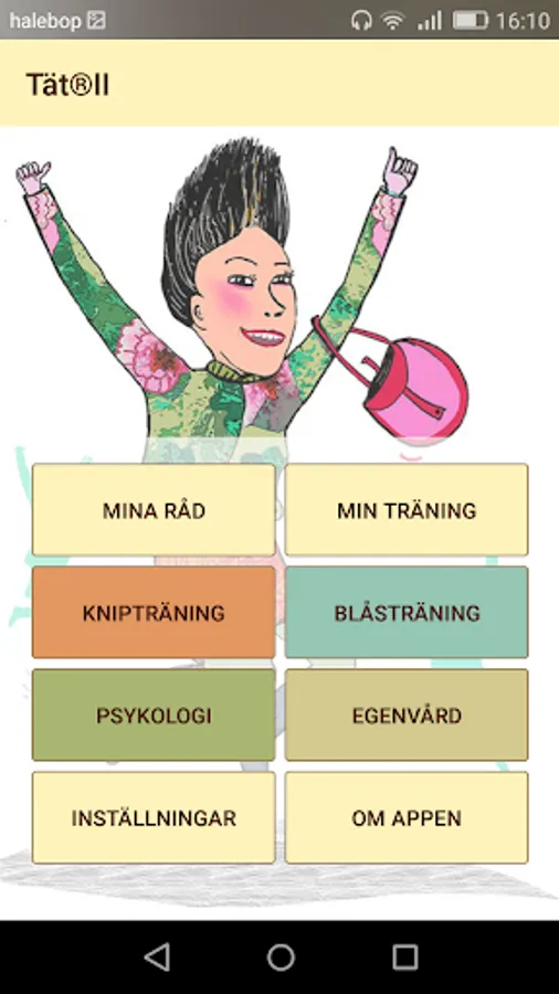 The app contains Tät®ll treatment for bladder training, knipträning and thoughts / behaviors, advice on self-care as well as function for reminders and statistics. It is developed by researchers at Umeå University for the treatment of urinary leakage associated with urgency (urge incontinence), and urine leakage both in the context of urgency and with exertion (mixed incontinence). Treatment programs are locked in this version. They are used in a research study in which the effect is evaluated. More information about the study and application of the study, see www.tät.nu. The app Tät® II is CE marked in accordance with regulations for medical device class l (LVFS 2003: 11).