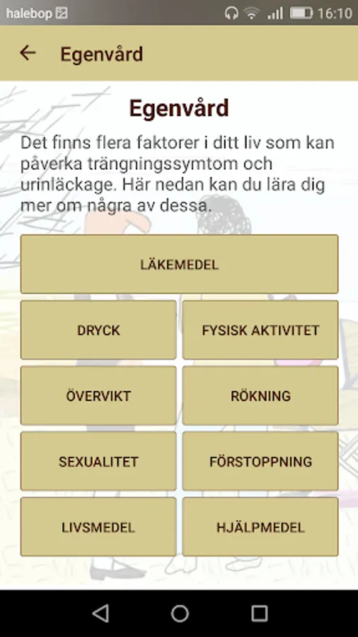 The app provides information on lifestyle factors and advice for self-care. Other functions are fixed in this version, requires activation and used in a research study, see www.tät.nu.