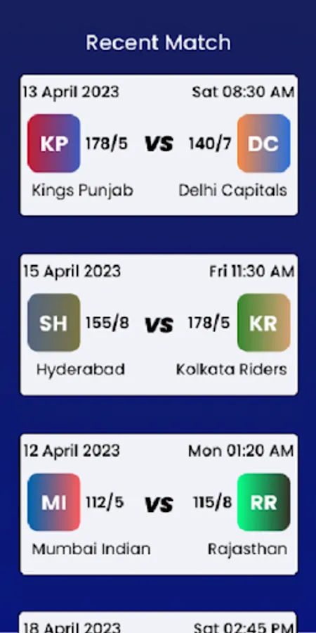 LIVE MATCH 2023 like Live Scores, Matches Details, Schedule/Fixtures, Team Details and many more things.