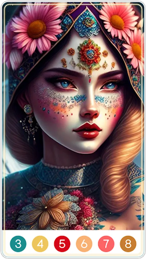 ✧ You need to follow the numbers in painting area and a special color palette suggests you what color each number corresponds to