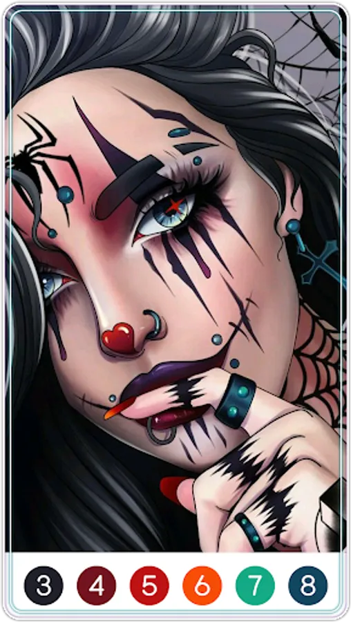 ✧ Zoom in, zoom out to paint by number small details of tattoo coloring book