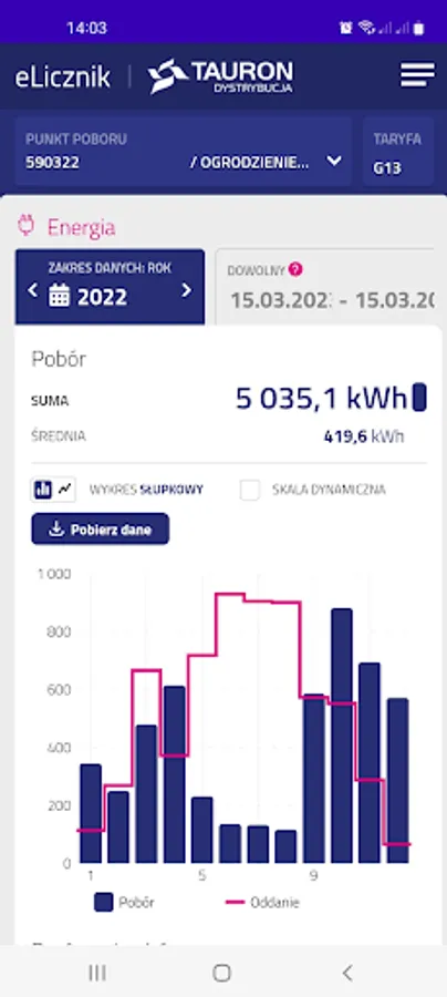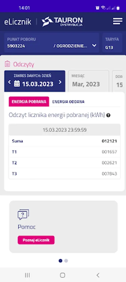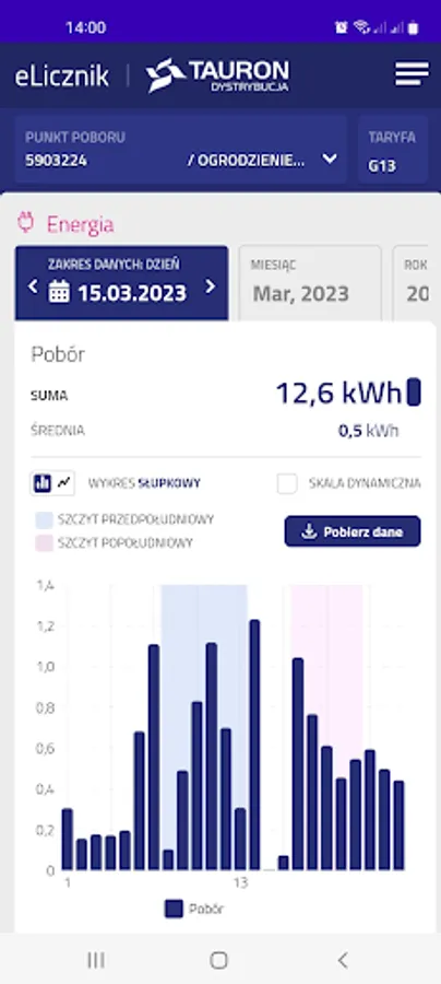 The website provides measurement data recorded by the billing electricity meter. The eLicznik service can be used by all TAURON Dystrybucja Customers who have a Remote Readout Meter (LZO) installed and automatic communication with the Remote Readout System started.