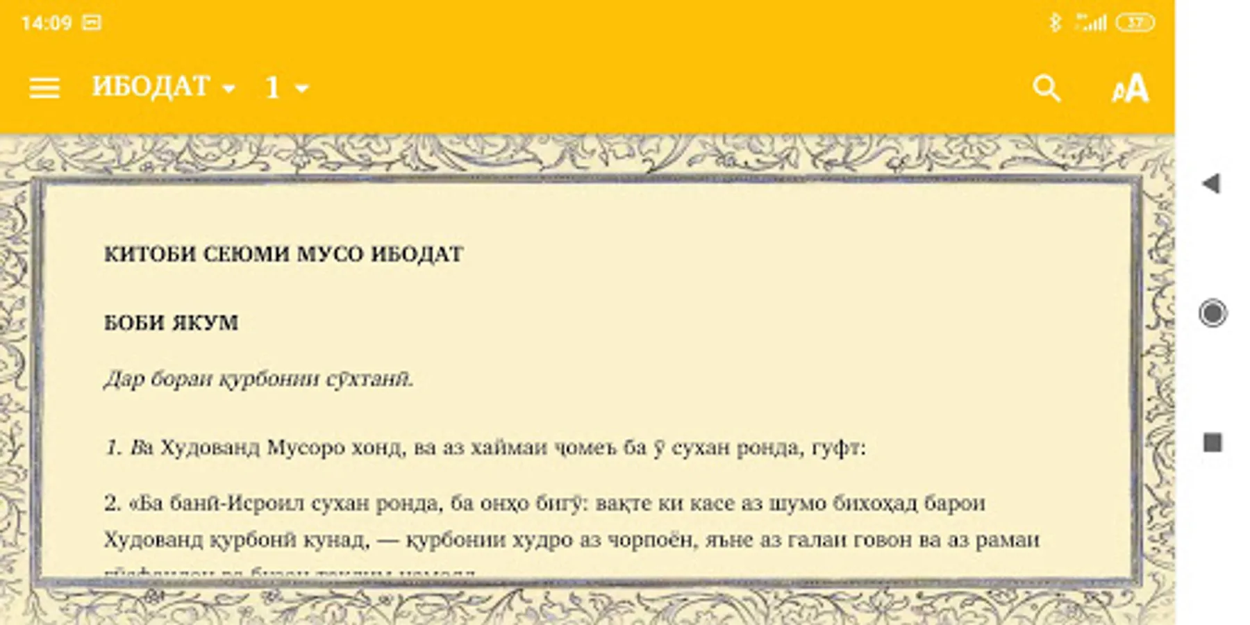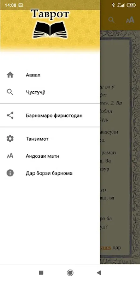 Kitobi Taurot (Taurot) ba zaboni toҷikӣ.