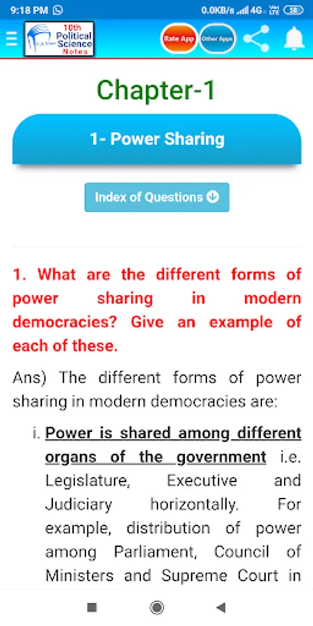 This app contains notes of Class 10th Political Science. These notes are based on the textbook of Political Science (Democracy & Politics) prescribed by the J&K State Board of School Education (J&K BOSE). However, it is equally useful for the teachers and students concerned with NCERT & CBSE. An attempt has been made to keep these notes to the point and precise wherever possible. It covers the following chapters:1) Power Sharing