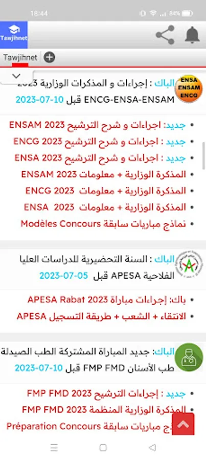 tawjihnet orientation maroc توجيه نت جديد المباريات.