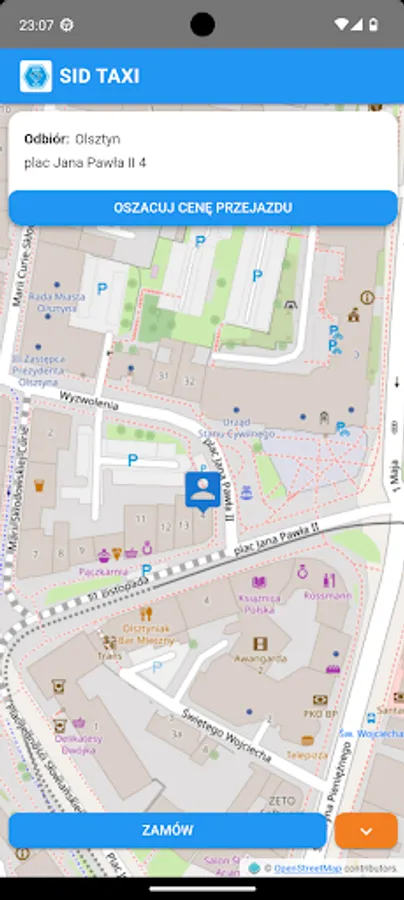 Order SID TAXI Olsztyn from your smartphone, efficiently and quickly to the address or GPS position