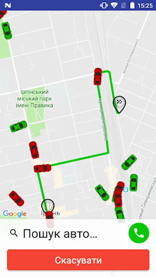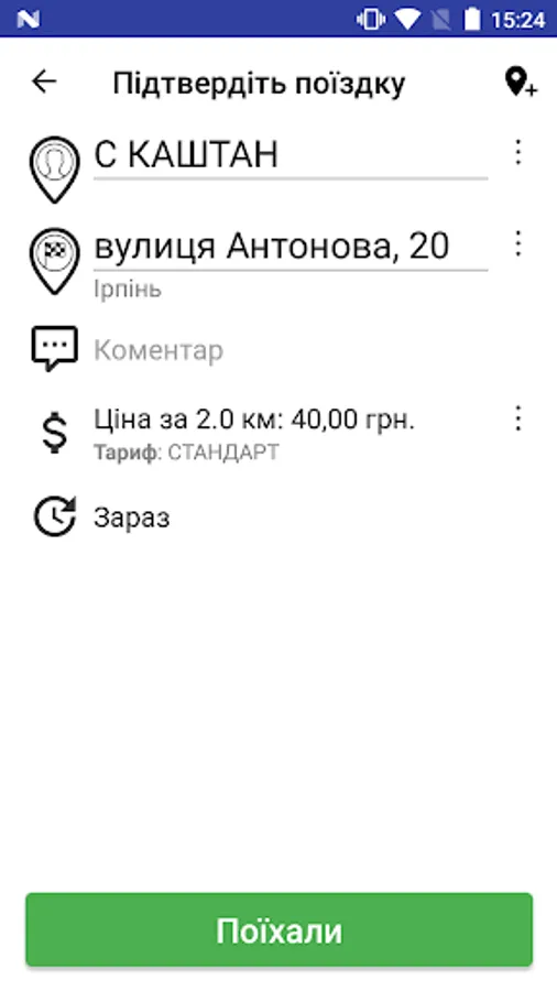 - the taxi route is displayed on the map;