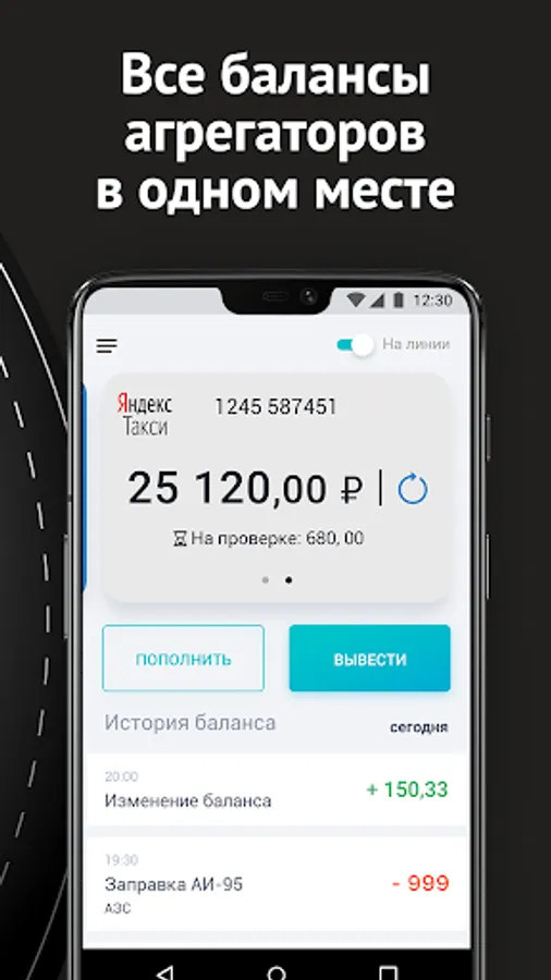 We have made our application for taxi drivers so that you can withdraw funds to your card instantly, without asking the manager and waiting for the settlement period.