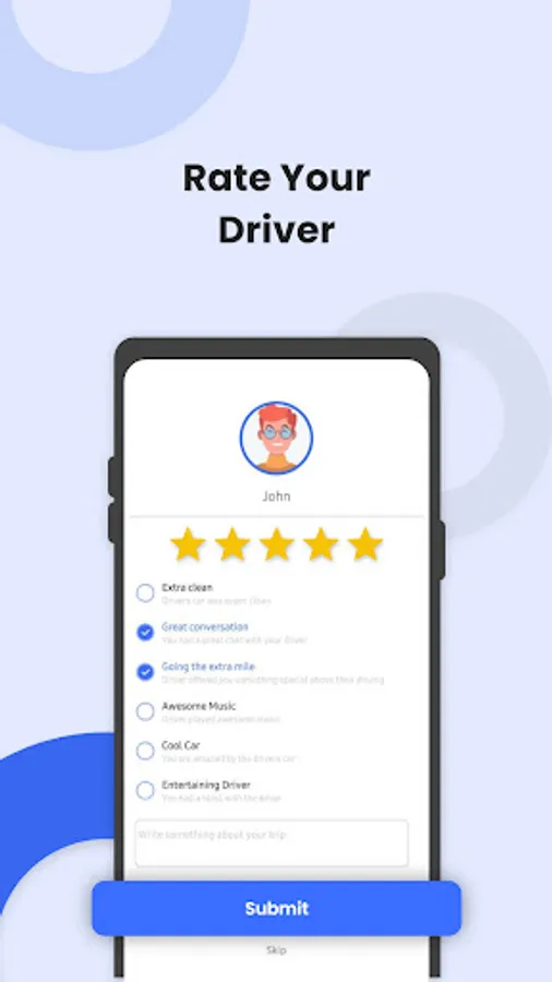 After your ride, you can submit a rating for the driver, including comments.