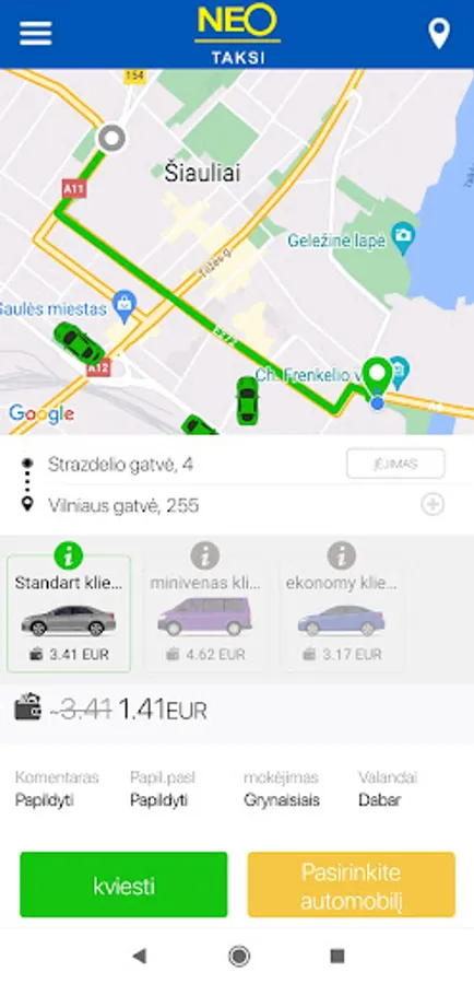 Call a taxi in Siauliai quickly and conveniently with the NEO taxi mobile app.