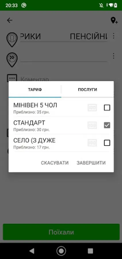 Before ordering, you can choose a suitable tariff. There are several options in the app: