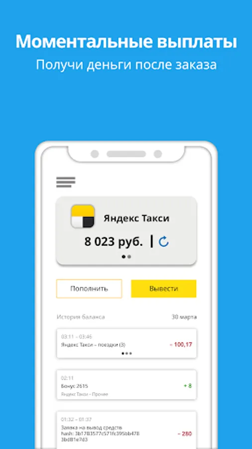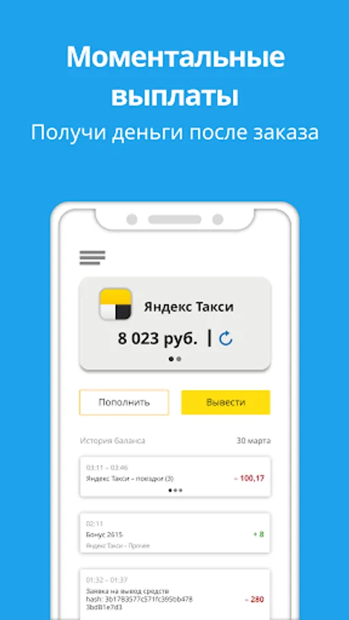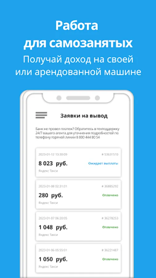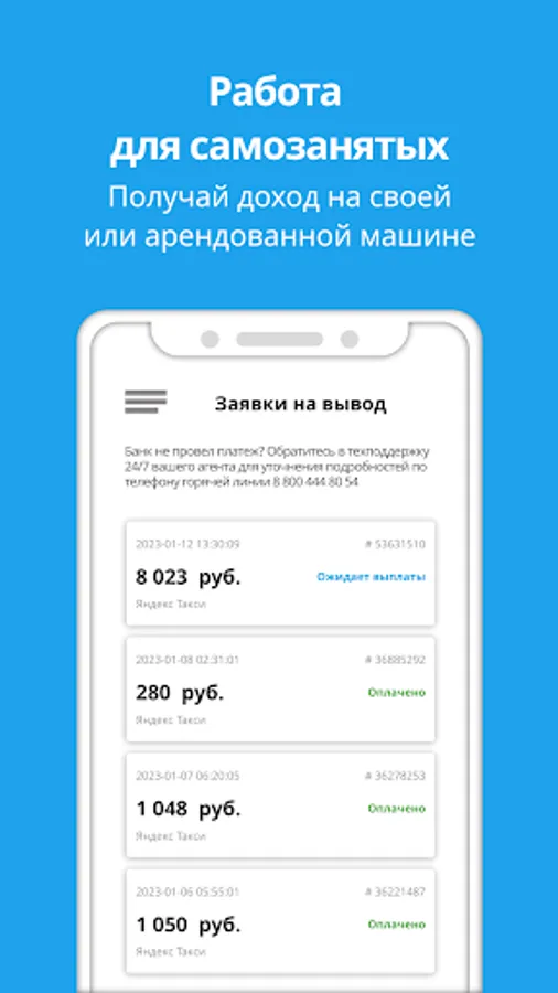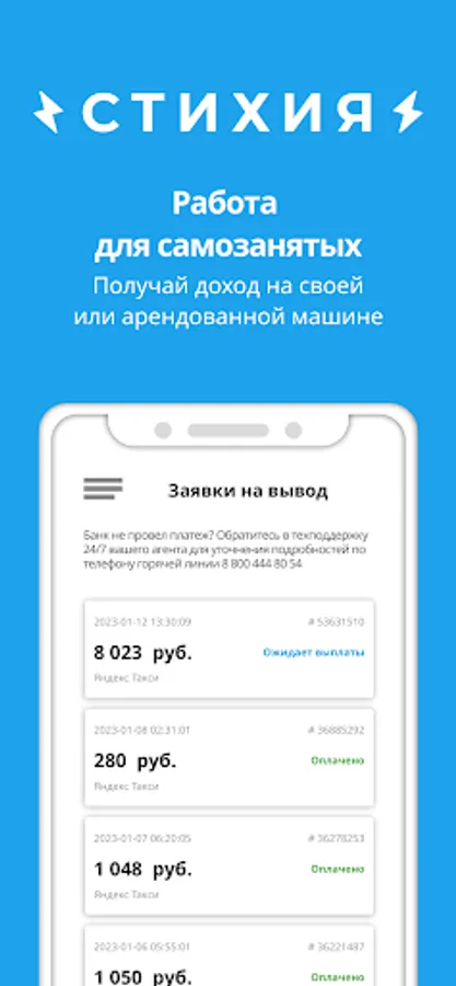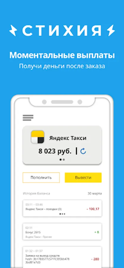 You can independently verify the speed of payments of the taxi company "Element" by downloading our application. Download, register and withdraw earned funds to the card of any bank today.