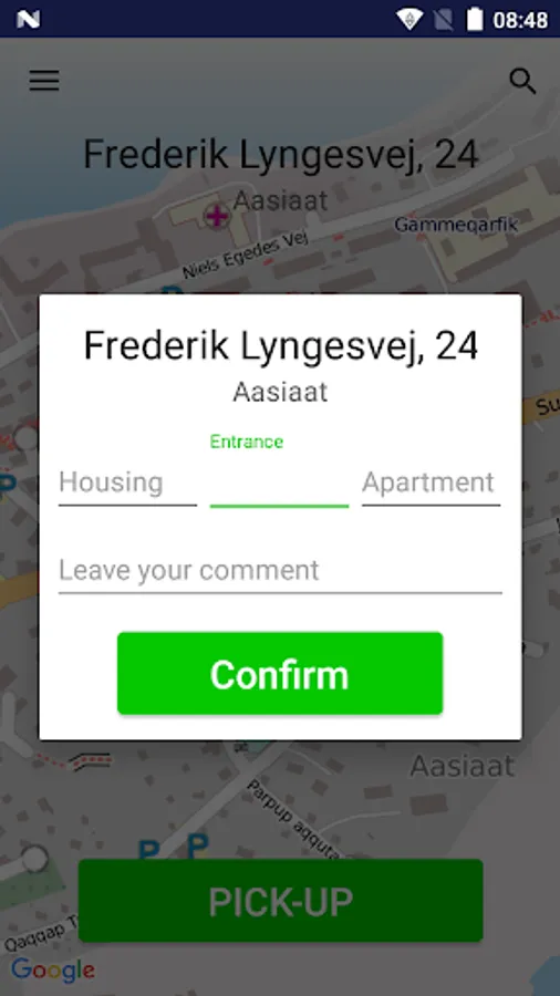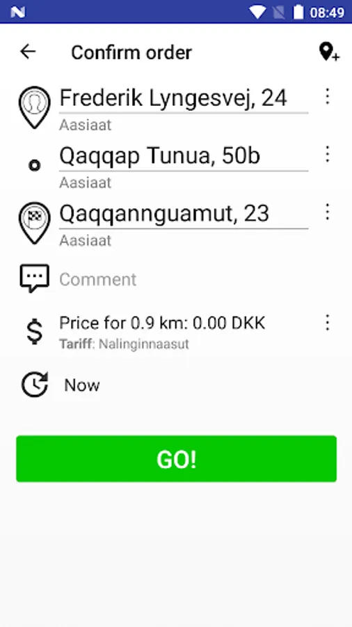 - Push the "Get Taxi" button and confirm the address.