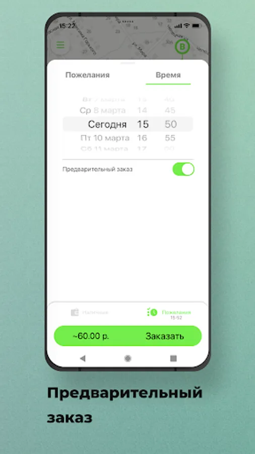 Need a car by a specific time and date? Order it in advance through the application, and at the appointed time, a taxi will be waiting for you at the entrance.