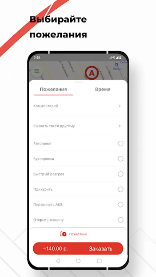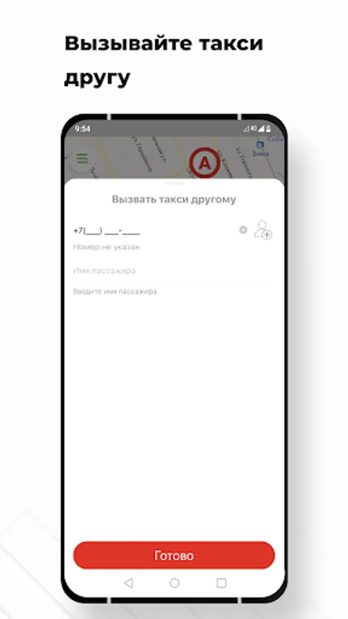 Use the option “Call a taxi for someone else” in the “Wishes” section and indicate his phone number. When the taxi arrives, an SMS will be sent to the specified number, and you will receive a message in the application.