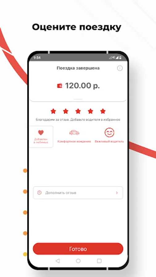 Rate the driver, write a review, or select a reaction from ready-made templates.