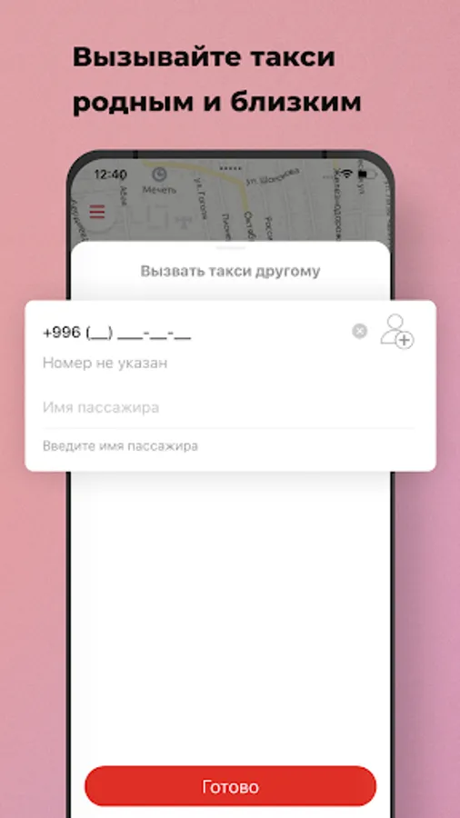 Используйте опцию “Вызвать такси другому” в разделе “Пожелания” и укажите его номер телефона. Когда такси подъедет, на указанный номер придет СМС, а вам — сообщение в приложении.
