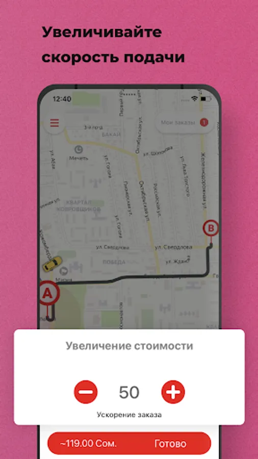 Спешите по делам? Увеличьте стоимость заказа, и водитель приедет на заказ быстрее.