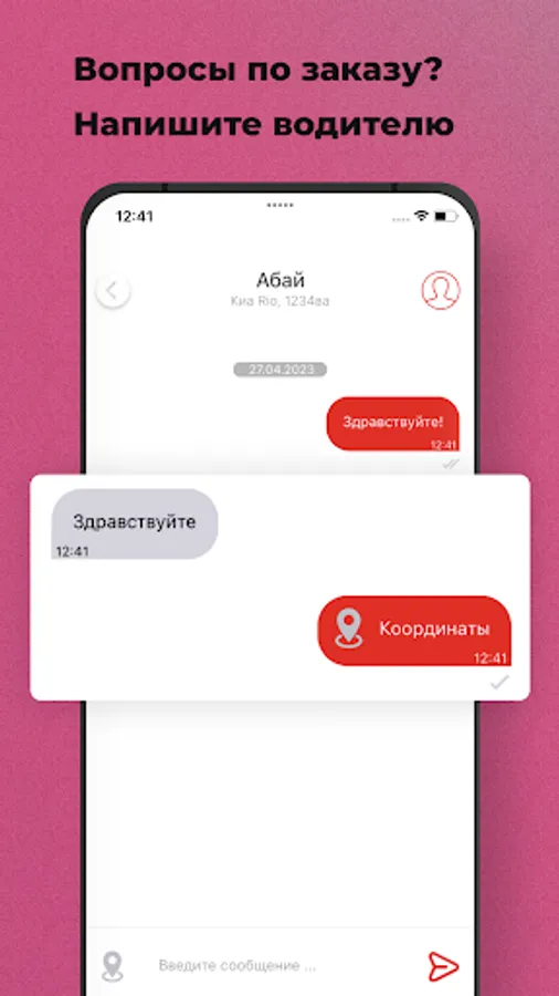Спросите в чате приложения, где он находится, или отправьте ваши координаты с помощью одной кнопки.