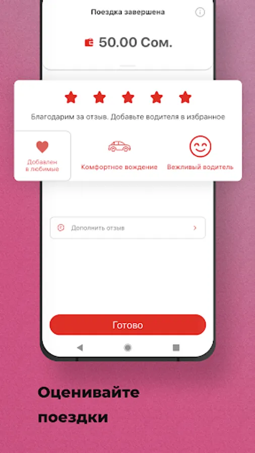 Поставьте оценку водителю, напишите отзыв или выберите реакцию из готовых шаблонов.