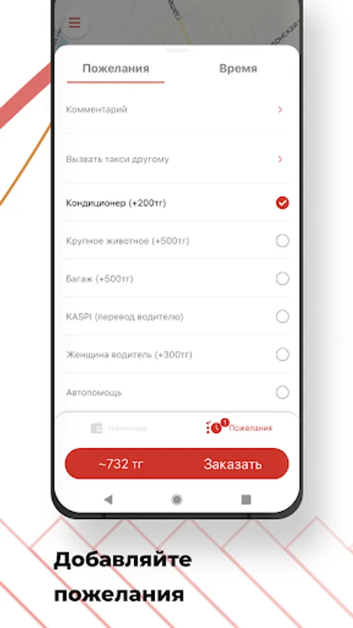 Please add additional requests to your order. For example, when it's +35 outside - select "air conditioning". If it is important for you that the driver is a woman, indicate "Woman driver".