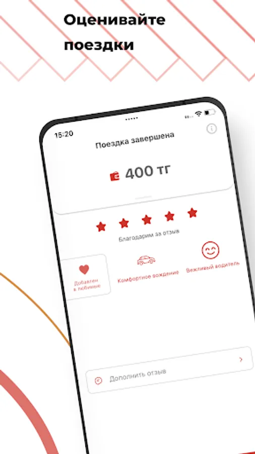 Rate the driver, write a review, or select a reaction from ready-made templates.