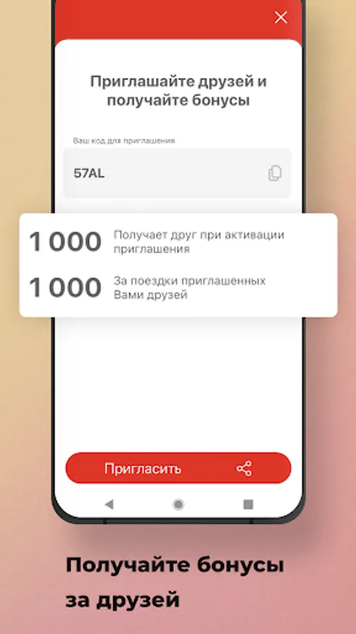 Invite friends to the app and earn bonuses using the referral system. Pay with them and save on travel.