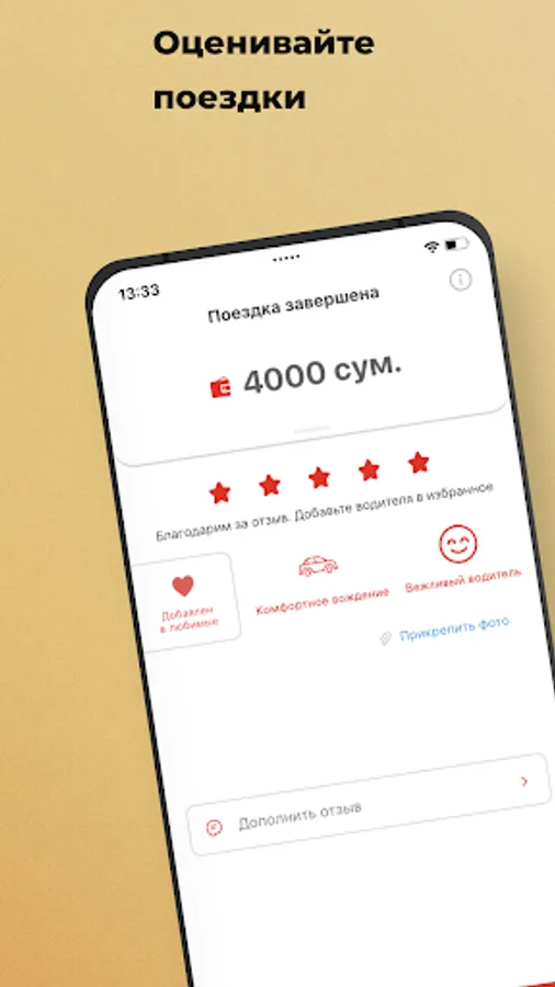 Rate the driver, write a review, or select a reaction from ready-made templates. Attach a photo to your review.