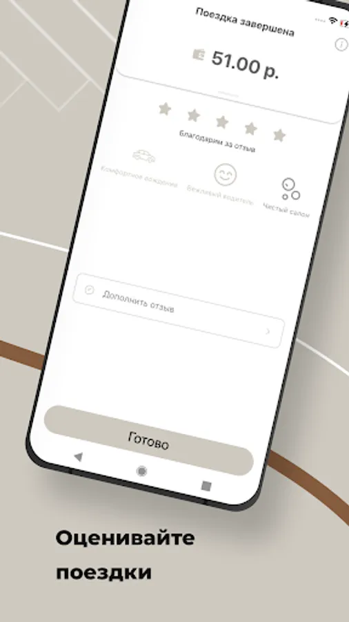 Rate the driver, write a review, or select a reaction from ready-made templates.