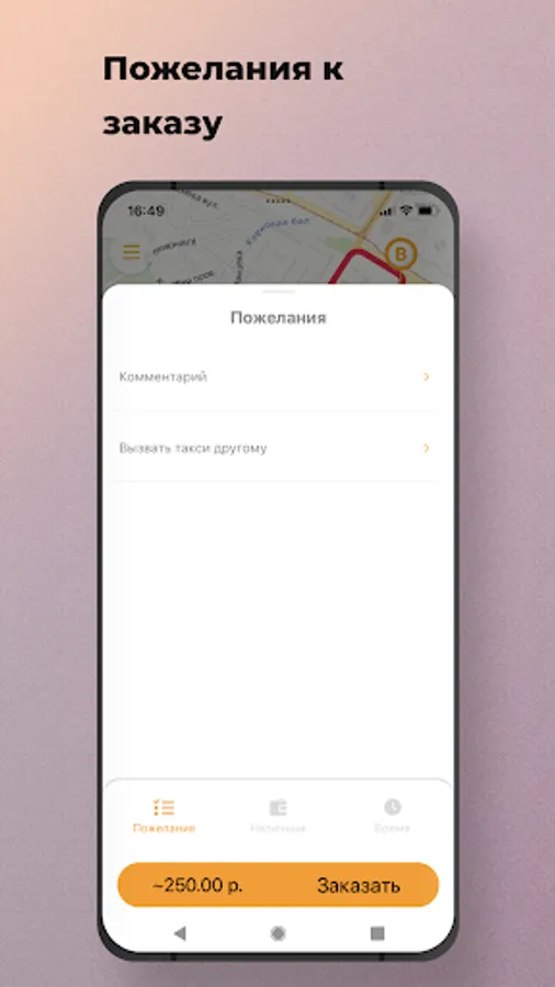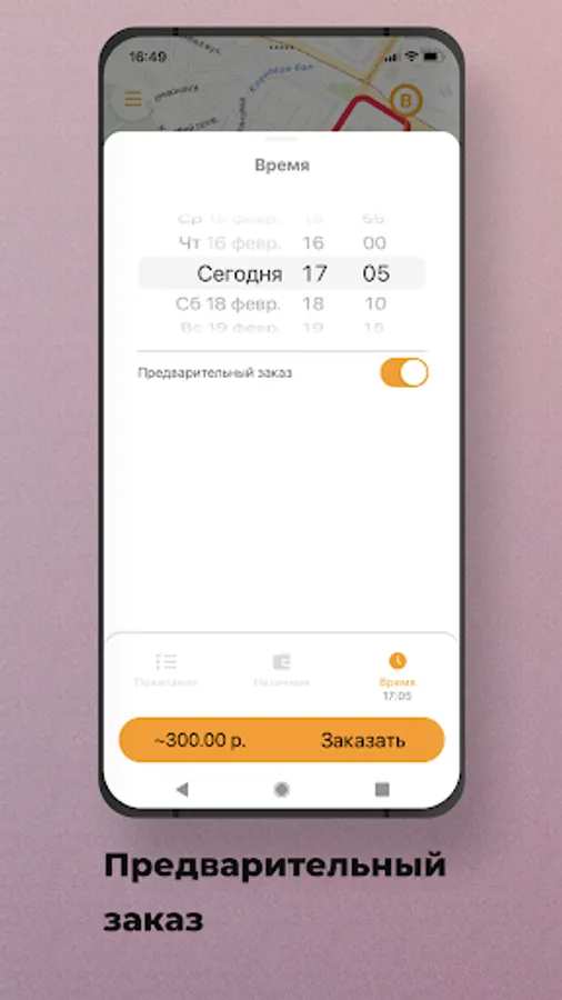 Select the "Pre-order" option. The car search will start shortly before the trip order, and the car will arrive at the appointed time. Also, you will know in advance the cost of the trip.