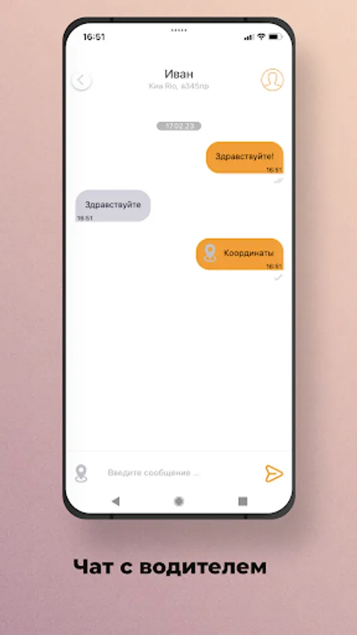 Use the option “Call a taxi for someone else” in the “Wishes” section and indicate his phone number. When the taxi arrives, an SMS will be sent to the specified number, and you will receive a message in the application.