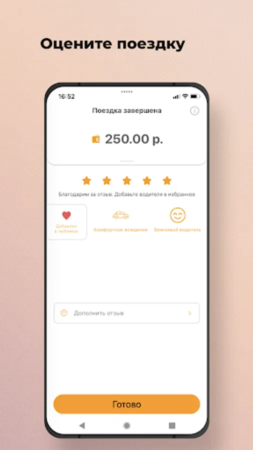 Rate the driver, write a review, or select a reaction from ready-made templates.