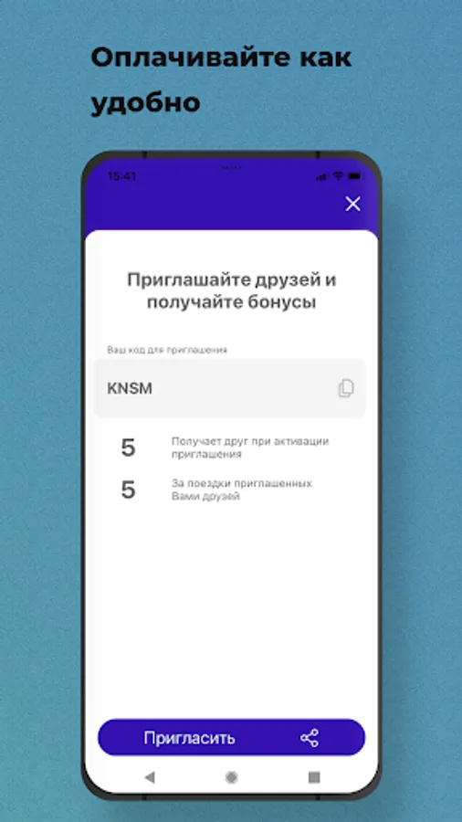 Invite friends to the app and earn bonuses using the referral system. Pay with them and save on travel.