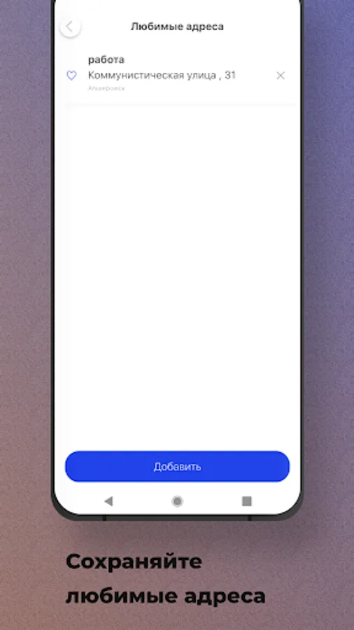 Save the places you frequent. Home, work, friends. Choose from saved options so you don't have to manually enter an address.