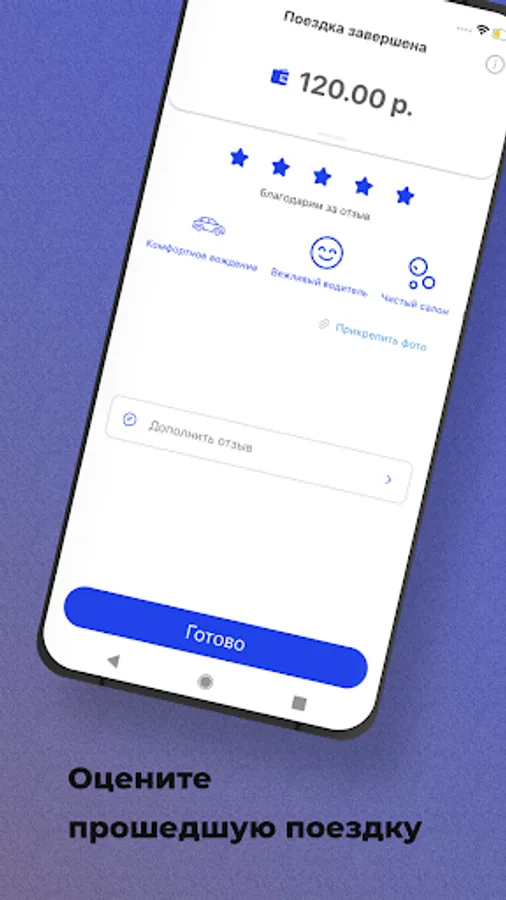 Rate your trip with ready-made templates. Add the driver to your favorites if you liked the trip, or thank him with a tip.