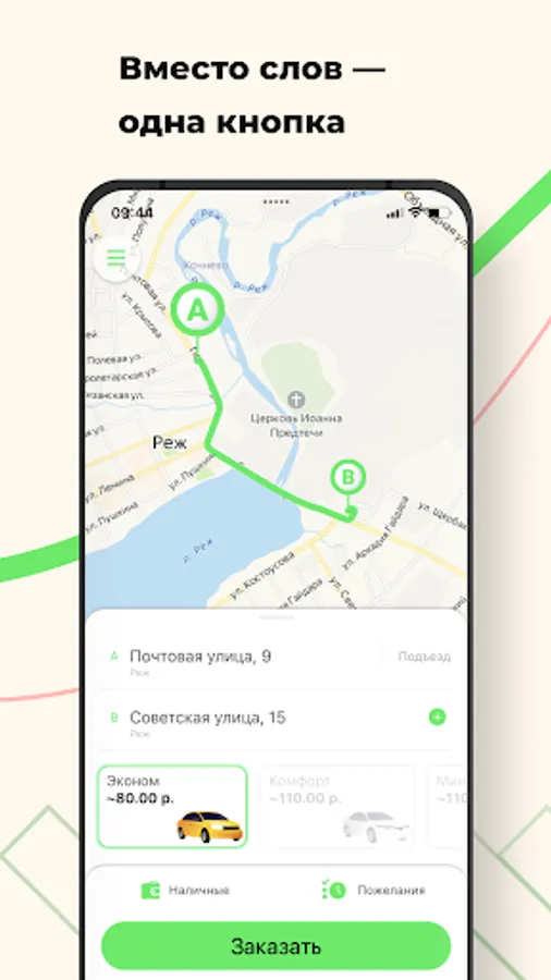 Use a simple and convenient way to order a taxi in the city of Rezh. With a mobile application, RTaxi is always at hand.