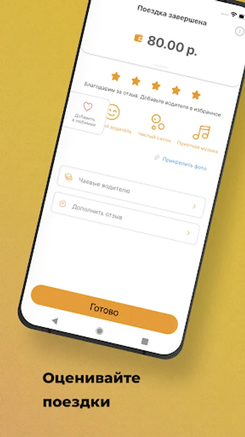 Rate the driver, write a review, or select a reaction from ready-made templates. Attach a photo to your review.