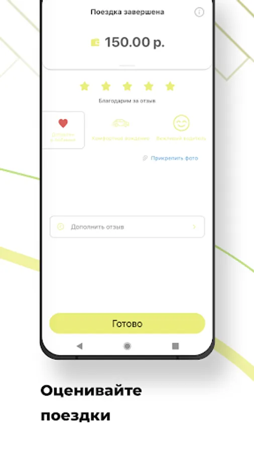 Rate the driver, write a review, or select a reaction from ready-made templates. Attach a photo to your review.