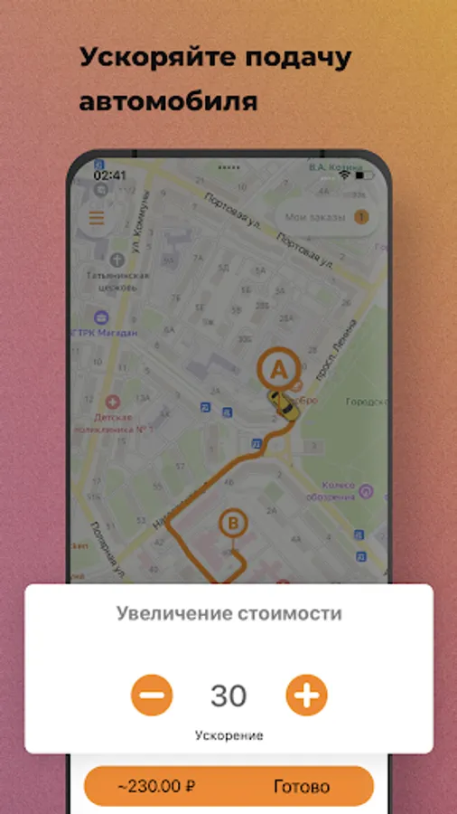 Order Taxi Fast and Furious in the city of Magadan through the application. It's 3 times faster than over the phone! There is a couple of seconds between the desire to get to the right place and the search for a car.