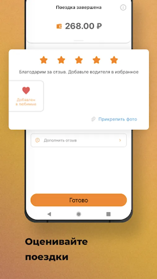 Rate the driver, write a review, or select a reaction from ready-made templates. Attach a photo to your review.