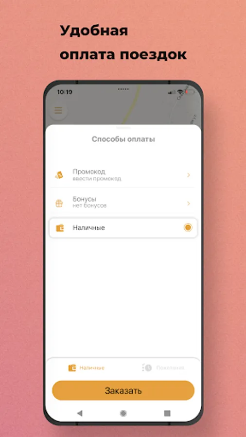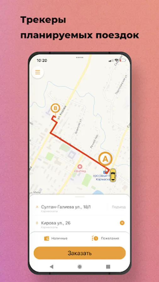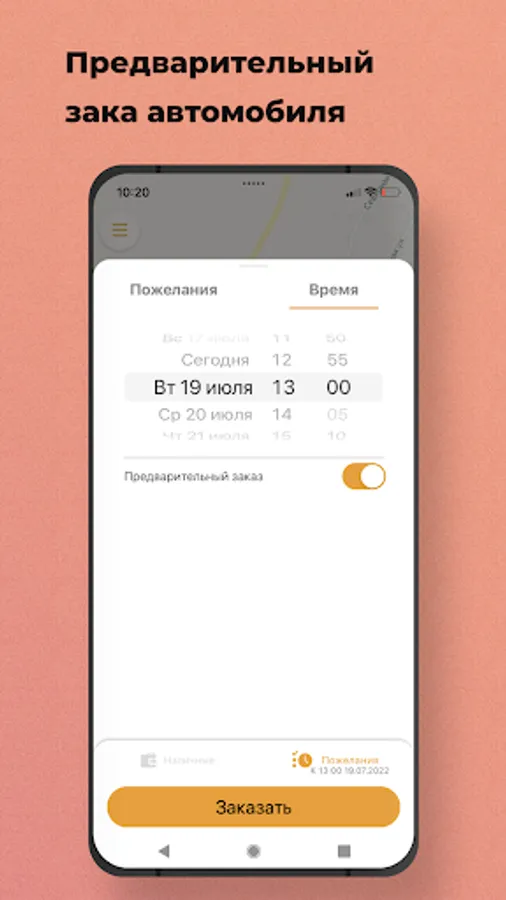 Select the "Pre-order" option. The car search will start shortly before the trip order, and the car will arrive at the appointed time. Also, you will know in advance the cost of the trip.