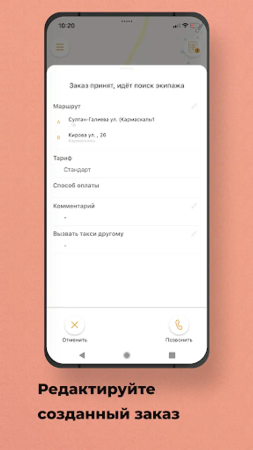 Edit it: change wishes, stops, destination address and fare.